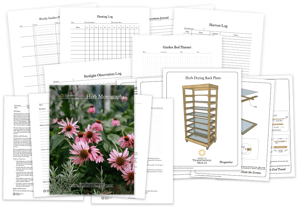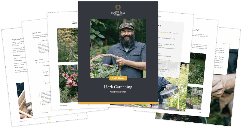 - A comprehensive skill sheet that covers each lesson including what herbs to plant, where to plant them, how to save seeds, and provides links to find supplies and more information.